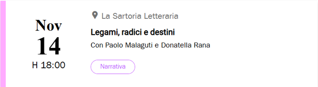 Evento gratuito/Entrata libera. La prenotazione è gradita a info@lasartorialetteraria.it
